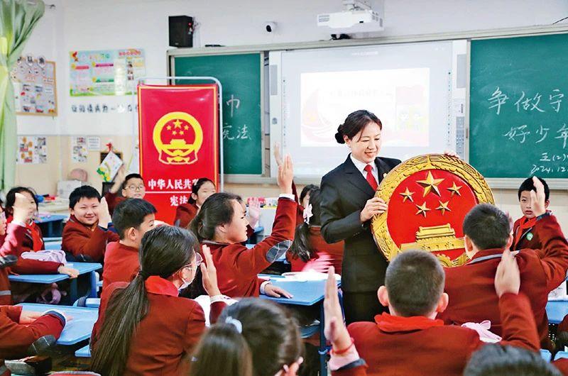 2024年12月4日是我國第十一個國家憲法日,12月1日至7日,各地開展以“大力弘揚憲法精神,推動進一步全面深化改革”為主題的“憲法宣傳周”活動。圖為12月2日,安徽省合肥市廬陽區(qū)司法局聯(lián)合人民法院在廬陽實驗小學開展“憲法宣講進校園”活動。司法部供圖