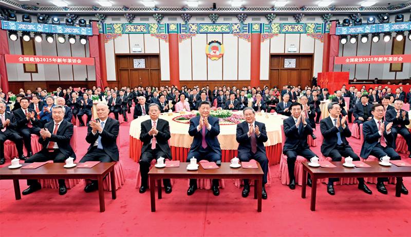 2024年12月31日,全國政協(xié)在北京舉行新年茶話會。黨和國家領(lǐng)導人習近平、李強、趙樂際、王滬寧、蔡奇、丁薛祥、李希、韓正出席茶話會并觀看演出。 新華社記者 謝環(huán)馳/攝