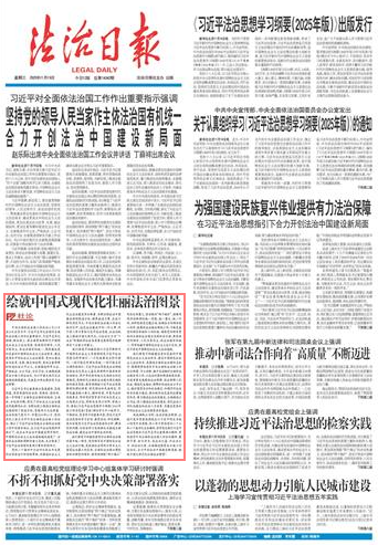 習近平總書記重要指示高屋建瓴、思想深邃,具有很強的政治性、思想性、指導性,進一步明確了全面依法治國的戰(zhàn)略性、全局性、方向性問題,深化了對社會主義法治建設的規(guī)律性認識,為新征程上推進全面依法治國指明了前進方向。思想偉力無遠弗屆,法治實踐氣象萬千。回望2020年11月,黨的歷史上首次召開中央全面依法治國工作會議,確立了習近平法治思想在全面依法治國工作中的指導地位。在習近平法治思想科學指引下,過去五年法治中國建設闊步前行,中國特色社會主義法治道路越走越寬廣,全面依法治國取得新的重大成就,充分彰顯了習近平法治思想的真理力量和實踐偉力。