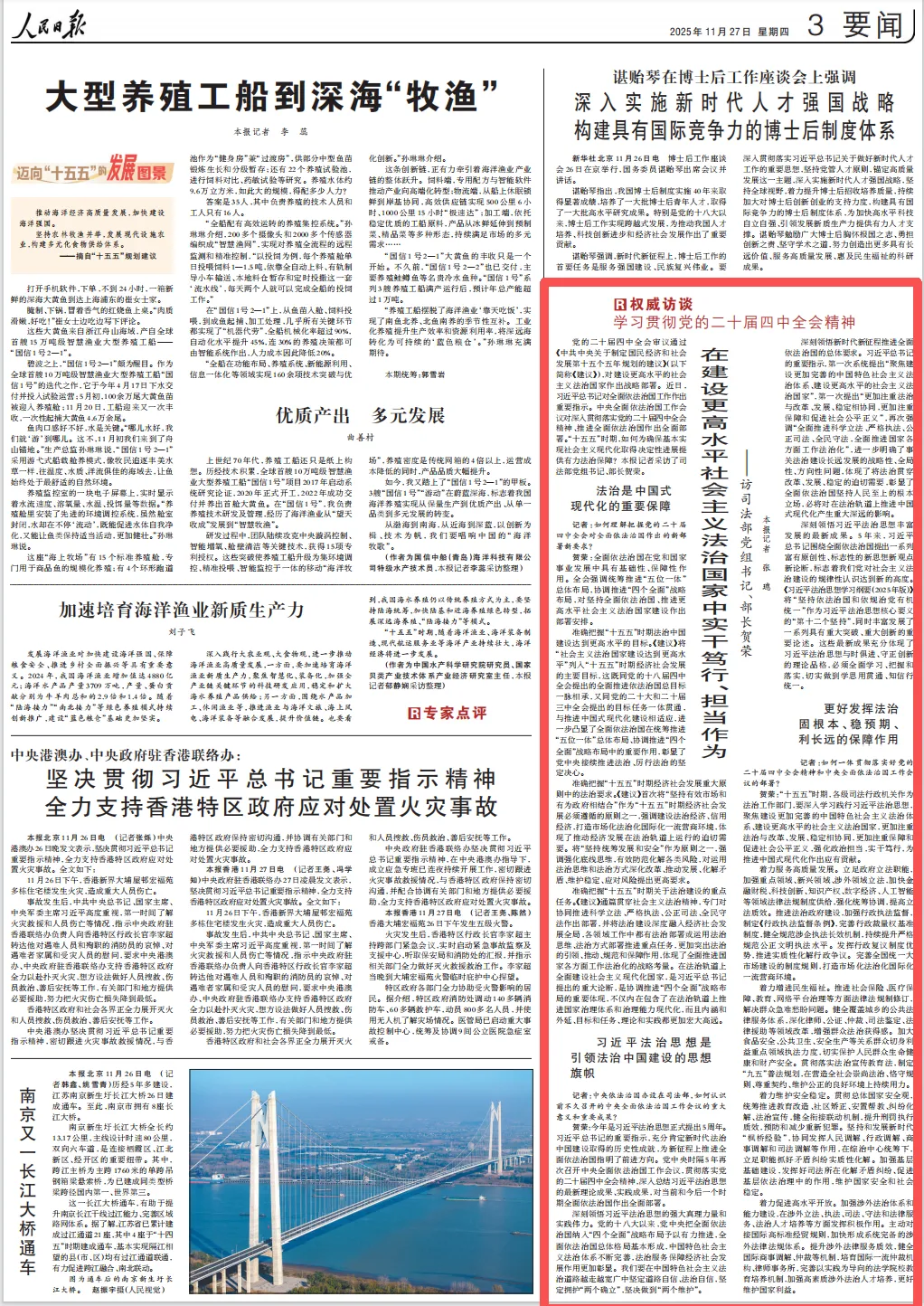 準(zhǔn)確把握“十五五”時期法治中國建設(shè)達(dá)到更高水平的目標(biāo)。《建議》將“社會主義法治國家建設(shè)達(dá)到更高水平”列入“十五五”時期經(jīng)濟社會發(fā)展的主要目標(biāo),這既同黨的十八屆四中全會提出的全面推進(jìn)依法治國總目標(biāo)一脈相承,又同黨的二十大和二十屆三中全會提出的目標(biāo)任務(wù)一體貫通,與推進(jìn)中國式現(xiàn)代化建設(shè)相適應(yīng),進(jìn)一步凸顯了全面依法治國在統(tǒng)籌推進(jìn)“五位一體”總體布局、協(xié)調(diào)推進(jìn)“四個全面”戰(zhàn)略布局中的重要作用,彰顯了黨中央接續(xù)推進(jìn)法治、厲行法治的堅定決心。