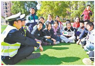 圖為江西省武寧縣公安局交管大隊(duì)民警近日走進(jìn)武寧縣第四小學(xué),開(kāi)展“文明交通 禮行天下”主題宣傳活動(dòng)。 熊遙 攝