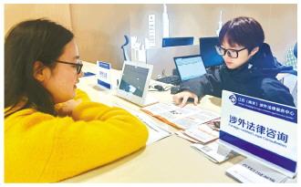 圖為企業(yè)經(jīng)營人員在江蘇(南京)涉外法律服務(wù)中心咨詢涉外法律事務(wù)。