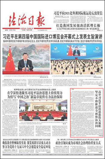 在中央全面依法治國工作會(huì)議召開一周年之際,中央依法治國辦11月4日召開深入學(xué)習(xí)貫徹習(xí)近平法治思想座談會(huì)。會(huì)議強(qiáng)調(diào),要把深入學(xué)習(xí)宣傳貫徹習(xí)近平法治思想作為一項(xiàng)長期的重大政治任務(wù),在學(xué)深悟透做實(shí)上持續(xù)用力,加快建設(shè)良法善治的法治中國,為續(xù)寫“中國之治”新篇章提供有力法治保障。