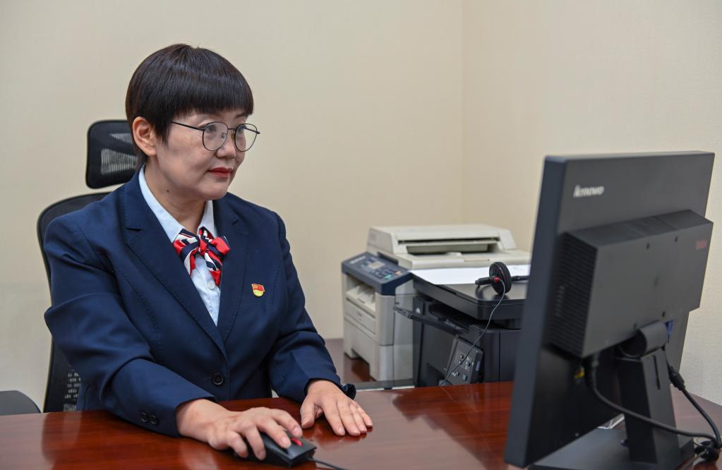 在中國工商銀行新疆烏魯木齊的一處營業(yè)網(wǎng)點(diǎn),李鵬在辦公室辦公(2022年9月24日攝)。新華社記者 郝建偉 攝