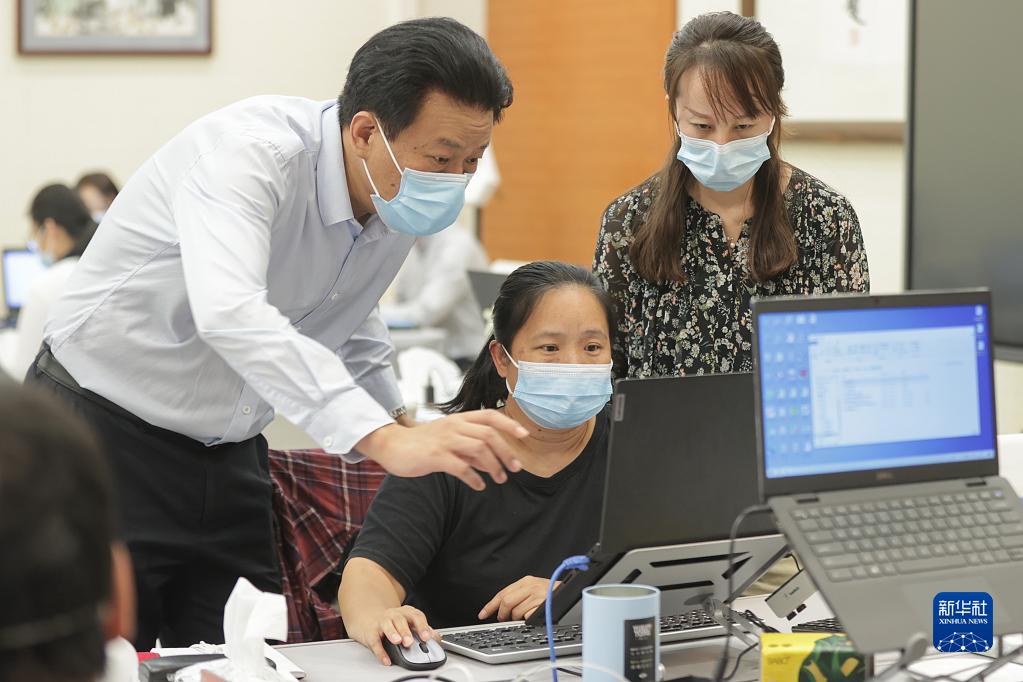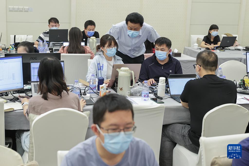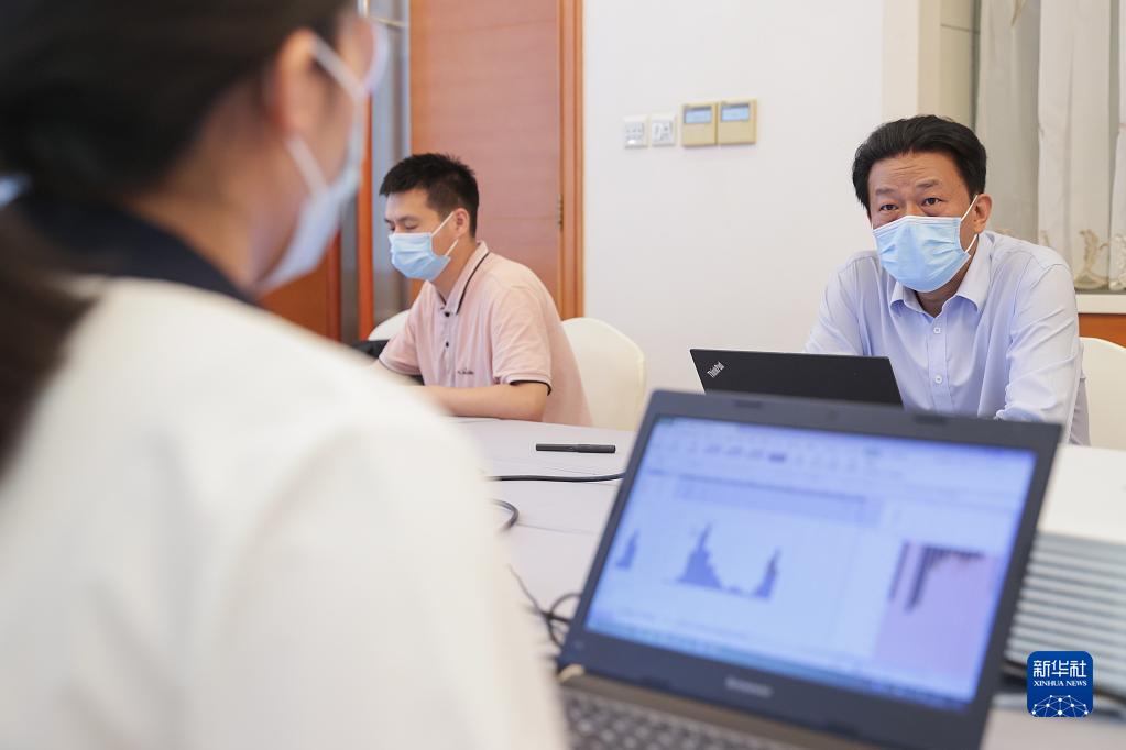 李群(左)在北京指導(dǎo)流調(diào)溯源數(shù)據(jù)分析工作(2022年9月18日攝)。新華社記者 張玉薇 攝