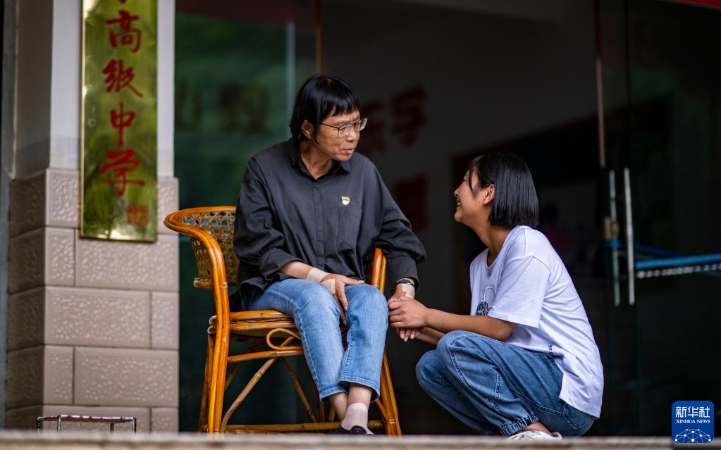云南麗江華坪女子高級中學(xué)黨支部書記、校長張桂梅在校園內(nèi)與學(xué)生交談(2021年8月23日攝)。新華社記者 江文耀 攝