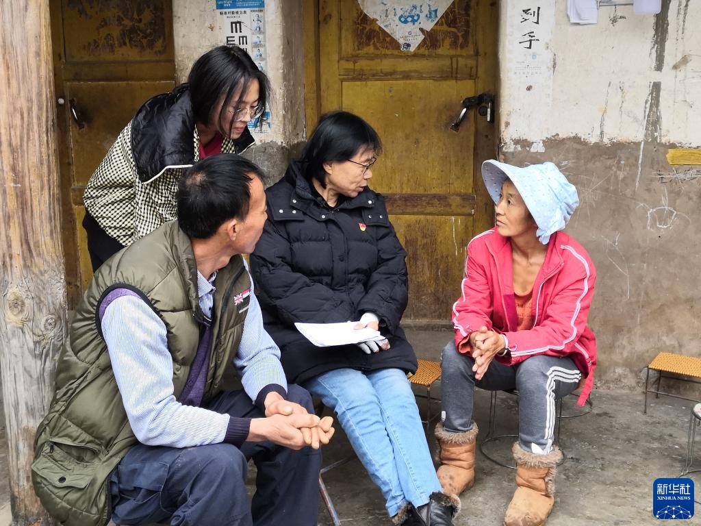 云南麗江華坪女子高級中學(xué)黨支部書記、校長張桂梅(右二)在家訪時與學(xué)生家長交談(2021年2月9日攝)。新華社發(fā)(王秀麗 攝)