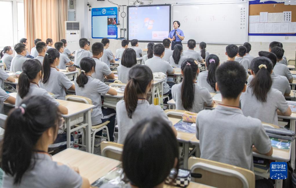 9月20日,在重慶市第三十七中學(xué),梅玫為學(xué)生開(kāi)展“莎姐”課堂講座。新華社記者 黃偉 攝