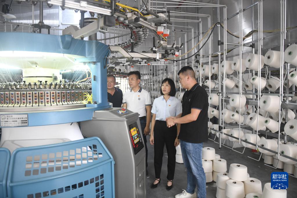 陸秀興(右二)在佛山市禪城區(qū)張槎街道古灶村內(nèi)一處產(chǎn)業(yè)園了解企業(yè)投資生產(chǎn)情況(2022年9月7日攝)。新華社記者 盧漢欣 攝
