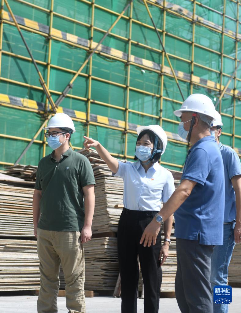 陸秀興(左二)在佛山市禪城區(qū)張槎街道古灶村內(nèi)一處產(chǎn)業(yè)園工地上與投資方交流(2022年9月7日攝)。新華社記者 盧漢欣 攝