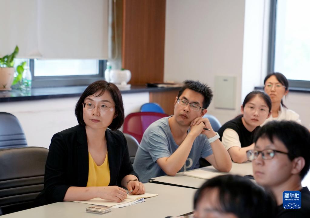 陳玲玲(左一)在中國科學(xué)院分子細(xì)胞科學(xué)卓越創(chuàng)新中心和學(xué)生們開會(huì)(2022年9月13日攝)。新華社記者 劉穎 攝