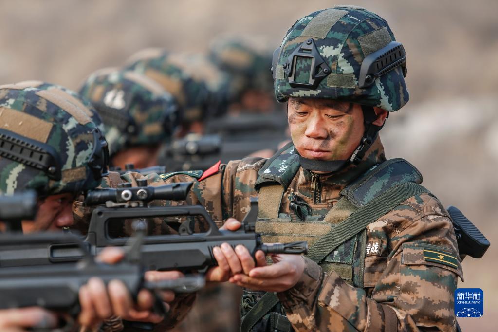 武警河北總隊(duì)某部大隊(duì)長李闖組織特戰(zhàn)隊(duì)員進(jìn)行據(jù)槍訓(xùn)練(2021年3月4日攝)。新華社發(fā)(張丹 攝)