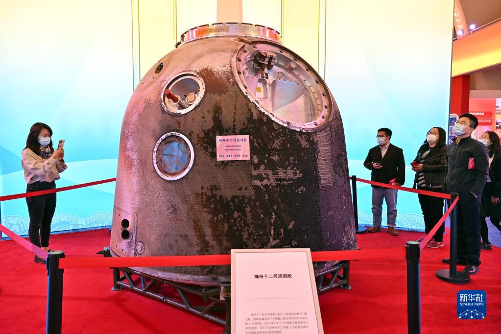 10月8日,觀眾參觀拍攝神舟十二號(hào)返回艙。新華社記者 李鑫 攝