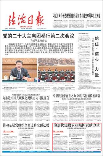 多位黨的二十大代表在接受《法治日報》記者采訪時一致認為,二十大報告對全面推進鄉(xiāng)村振興作出重要部署,明確了新時代新征程上推進農業(yè)農村現代化的重大任務。要按照二十大報告繪制的路線圖,扎實推動鄉(xiāng)村產業(yè)、人才、文化、生態(tài)、組織振興,為加快建設農業(yè)強國貢獻力量。