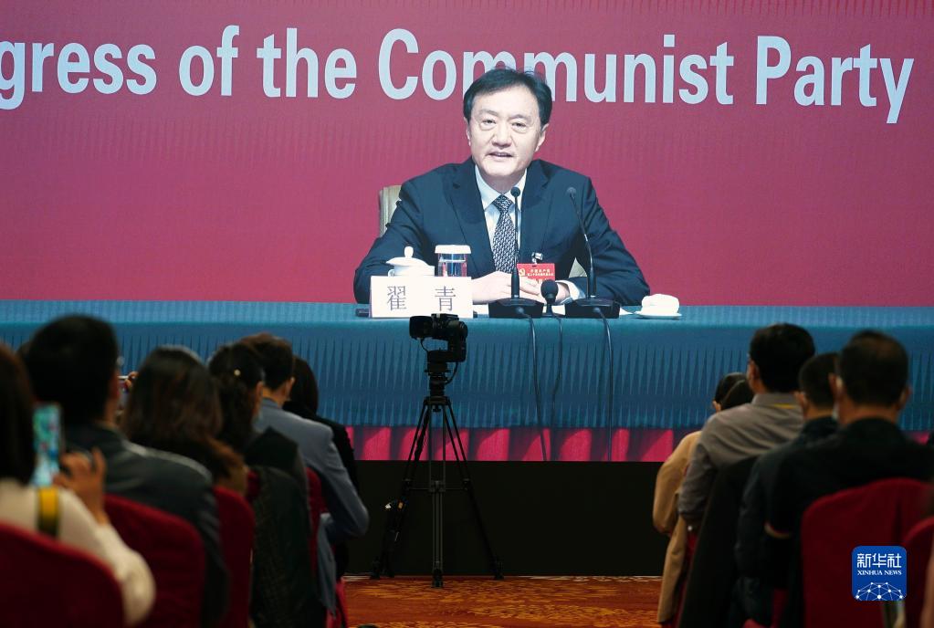 10月21日,中國共產(chǎn)黨第二十次全國代表大會新聞中心舉行記者招待會。生態(tài)環(huán)境部黨組成員、副部長翟青圍繞“建設(shè)人與自然和諧共生的美麗中國”主題與記者交流。