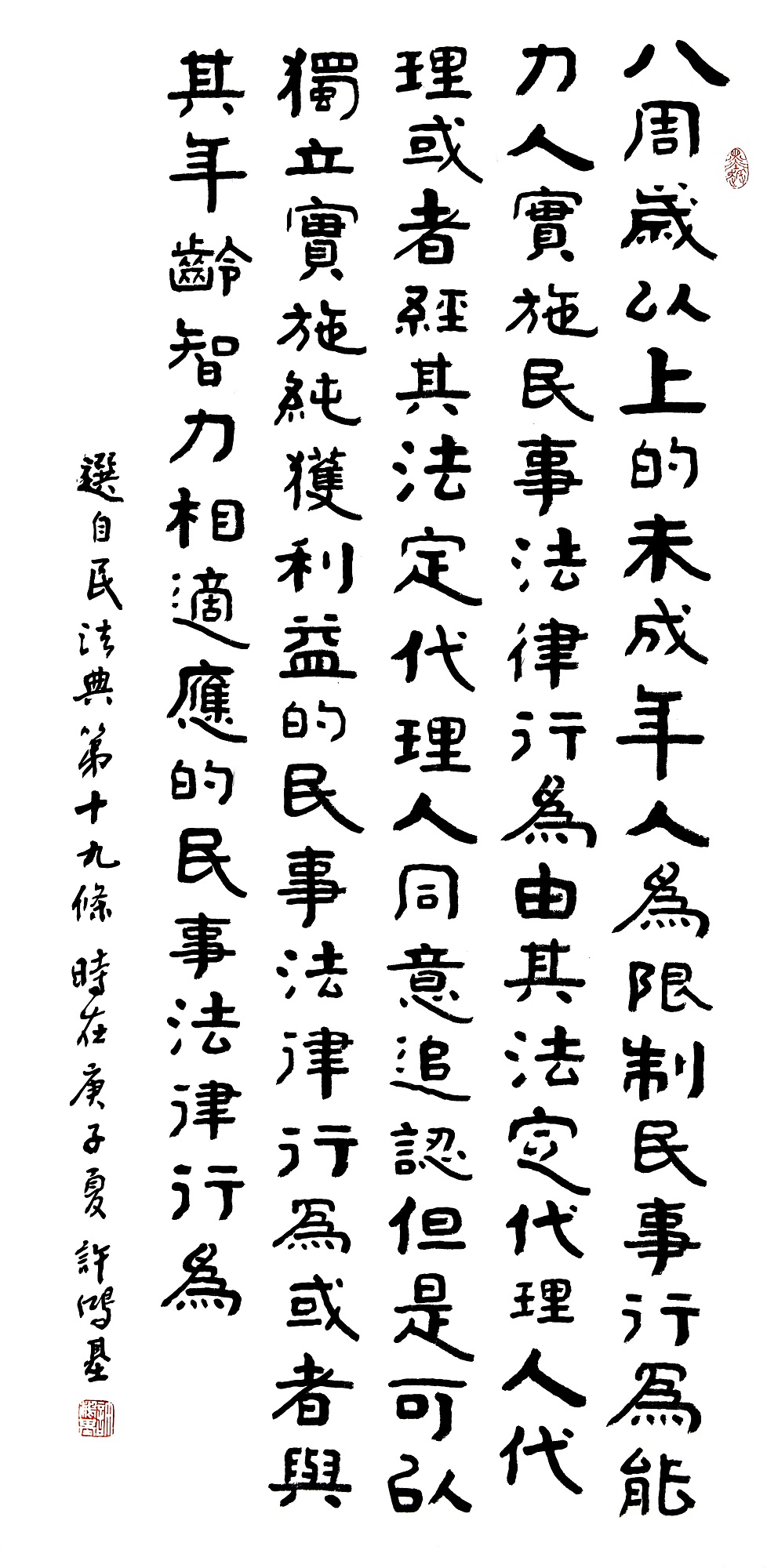 “書·法”活動(dòng)以書寫《中華人民共和國民法典》法條開筆,未來將對準(zhǔn)更多的法律。