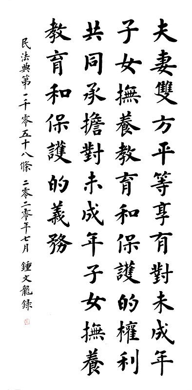 鐘文龍,山東省青島市南區(qū)書法家協(xié)會(huì)副主席,師從盧中南先生,專注唐楷研習(xí),致力于楷書教育與創(chuàng)作。