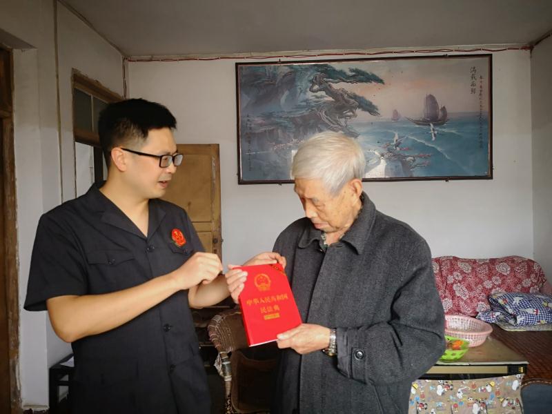 鑒于2021年1月1日即將施行的《民法典》合同編與現(xiàn)行合同法相比存在部分變化,為便于黃老更進一步了解即將施行的民法典合同編內(nèi)容,大觀法庭決定將《民法典》送給黃老??紤]到黃老年歲已大,行動不便,法庭干警親自上門將民法典送到了黃老手里,劉小彬還為黃老講述《民法典》中的亮點內(nèi)容及合同編的變化,并解答黃老及家屬關于法律問題的咨詢。