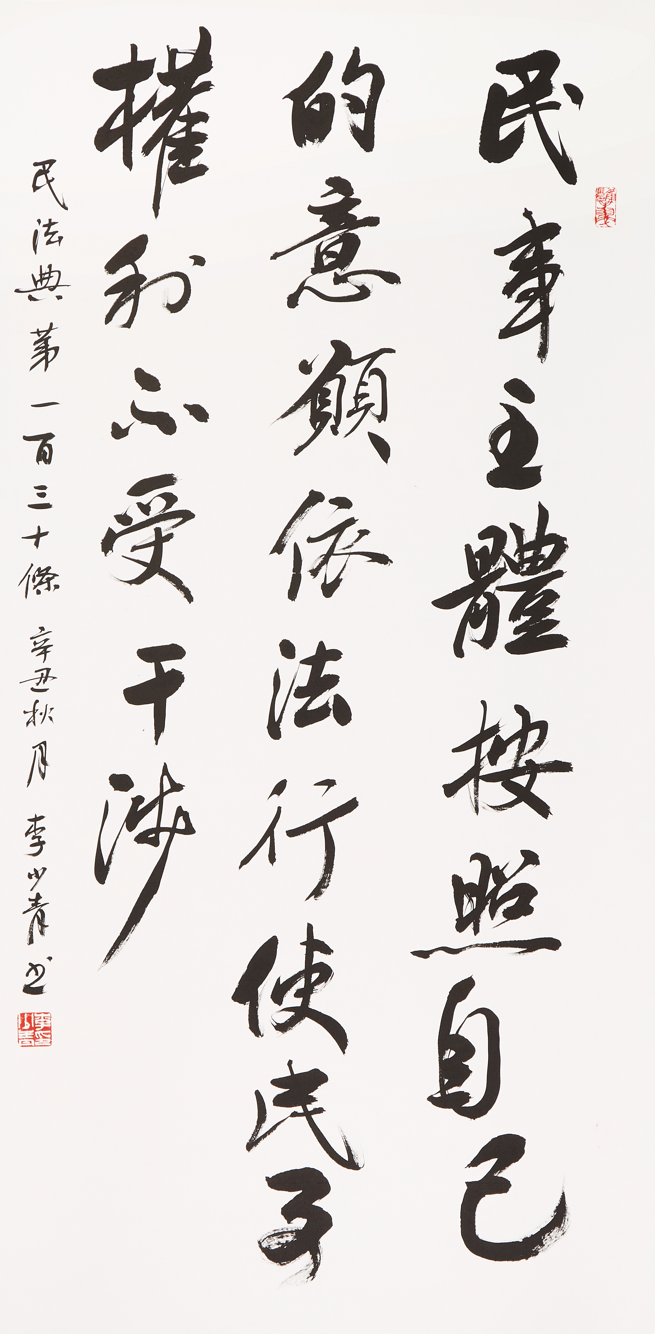 “書·法”活動(dòng)以書寫《中華人民共和國(guó)民法典》法條開筆,未來(lái)將對(duì)準(zhǔn)更多的法律。