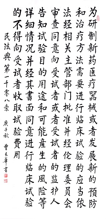 民法典第一千零八條 為研制新藥、醫(yī)療器械或者發(fā)展新的預(yù)防和治療方法,需要進(jìn)行臨床試驗(yàn)的,應(yīng)當(dāng)依法經(jīng)相關(guān)主管部門(mén)批準(zhǔn)并經(jīng)倫理委員會(huì)審查同意,向受試者或者受試者的監(jiān)護(hù)人告知試驗(yàn)?zāi)康?、用途和可能產(chǎn)生的風(fēng)險(xiǎn)等詳細(xì)情況,并經(jīng)其書(shū)面同意。進(jìn)行臨床試驗(yàn)的,不得向受試者收取試驗(yàn)費(fèi)用。