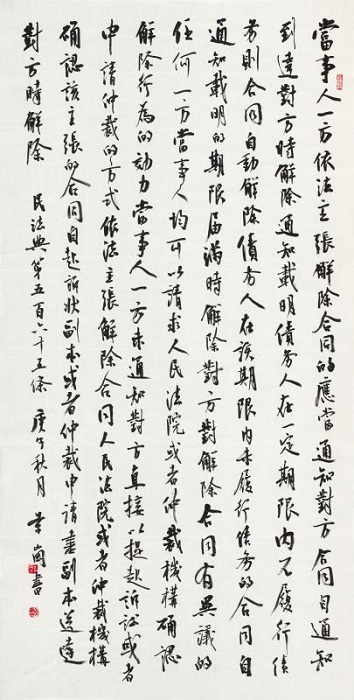 “書·法”活動(dòng)以書寫《中華人民共和國民法典》法條開筆,未來將對(duì)準(zhǔn)更多的法律。