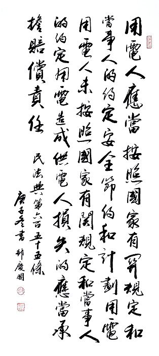 民法典第六百五十五條 用電人應(yīng)當(dāng)按照國家有關(guān)規(guī)定和當(dāng)事人的約定安全、節(jié)約和計劃用電。用電人未按照國家有關(guān)規(guī)定和當(dāng)事人的約定用電,造成供電人損失的,應(yīng)當(dāng)承擔(dān)賠償責(zé)任。