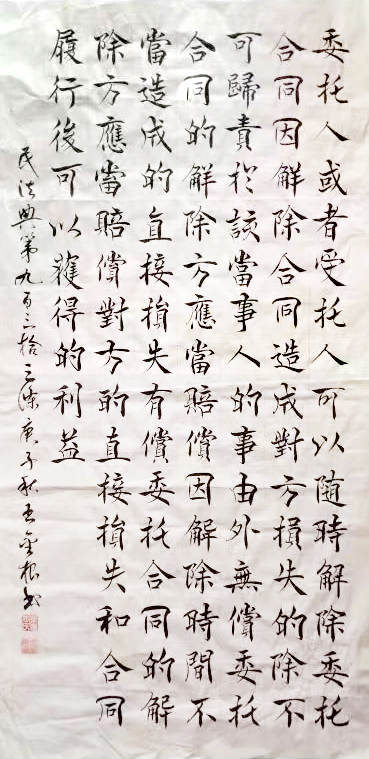民法典第九百三十三條 委托人或者受托人可以隨時解除委托合同。因解除合同造成對方損失的,除不可歸責于該當事人的事由外,無償委托合同的解除方應當賠償因解除時間不當造成的直接損失,有償委托合同的解除方應當賠償對方的直接損失和合同履行后可以獲得的利益。