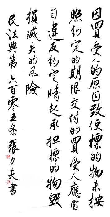 民法典第六百零五條 因買受人的原因致使標(biāo)的物未按照約定的期限交付的,買受人應(yīng)當(dāng)自違反約定時(shí)起承擔(dān)標(biāo)的物毀損、滅失的風(fēng)險(xiǎn)。