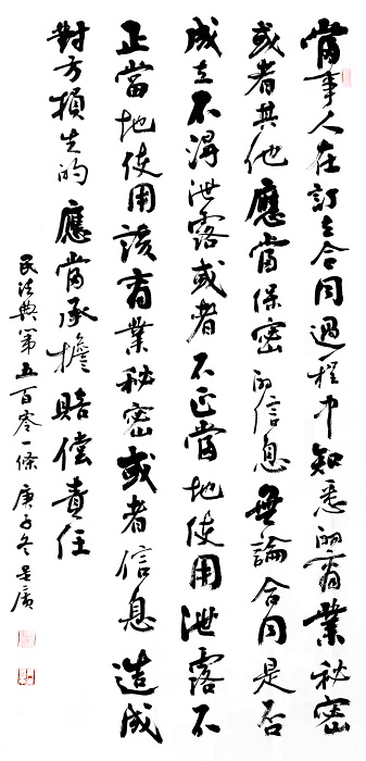 民法典第五百零一條 當事人在訂立合同過程中知悉的商業(yè)秘密或者其他應當保密的信息,無論合同是否成立,不得泄露或者不正當?shù)厥褂?;泄露、不正當?shù)厥褂迷撋虡I(yè)秘密或者信息,造成對方損失的,應當承擔賠償責任。