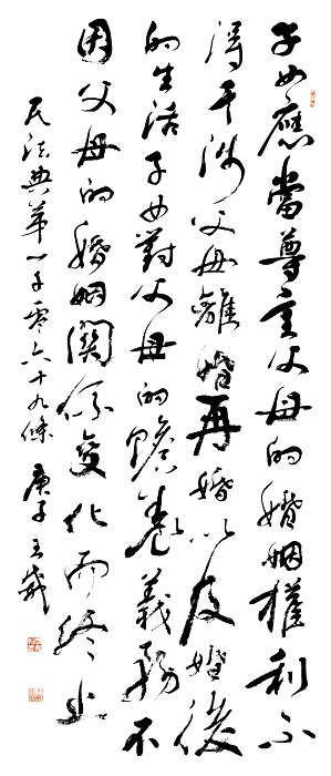 民法典第一千零六十九條 子女應(yīng)當尊重父母的婚姻權(quán)利,不得干涉父母離婚、再婚以及婚后的生活。子女對父母的贍養(yǎng)義務(wù),不因父母的婚姻關(guān)系變化而終止。