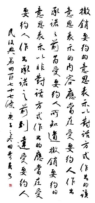 民法典第四百七十七條 撤銷要約的意思表示以對(duì)話方式作出的,該意思表示的內(nèi)容應(yīng)當(dāng)在受要約人作出承諾之前為受要約人所知道;撤銷要約的意思表示以非對(duì)話方式作出的,應(yīng)當(dāng)在受要約人作出承諾之前到達(dá)受要約人。