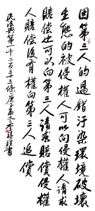 書法作品入展首屆全國法治文化書法展等。