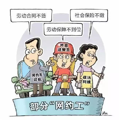 “網(wǎng)約工”打破了原來的“公司+員工”的模式,變成“平臺+個人”,大部分“網(wǎng)約工”以靈活、彈性、平臺、共享等就業(yè)形式存在,他們與互聯(lián)網(wǎng)平臺的法律關(guān)系較難界定。一些不具備法定意義上的勞動合同關(guān)系,如一些網(wǎng)約平臺上的快遞騎手,當中有相當一部分人員是以“兼職”的身份存在于“網(wǎng)約”的雇傭關(guān)系里。這也讓“網(wǎng)約工”這一新興群體游離于傳統(tǒng)的工傷保險制度以外,缺乏相應(yīng)的保障。