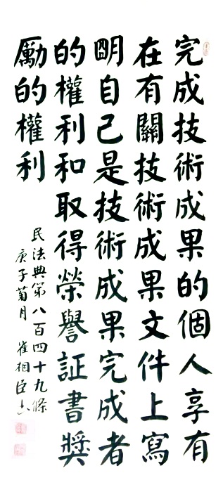 民法典第八百四十九條 完成技術(shù)成果的個(gè)人享有在有關(guān)技術(shù)成果文件上寫明自己是技術(shù)成果完成者的權(quán)利和取得榮譽(yù)證書、獎(jiǎng)勵(lì)的權(quán)利。