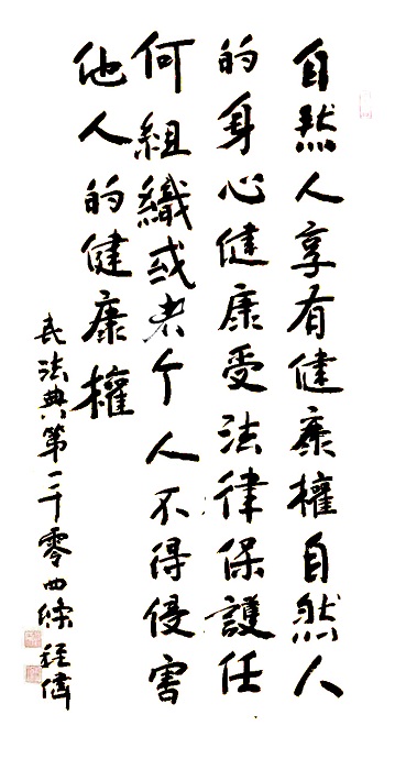 民法典第一千零四條 自然人享有健康權。自然人的身心健康受法律保護。任何組織或者個人不得侵害他人的健康權。