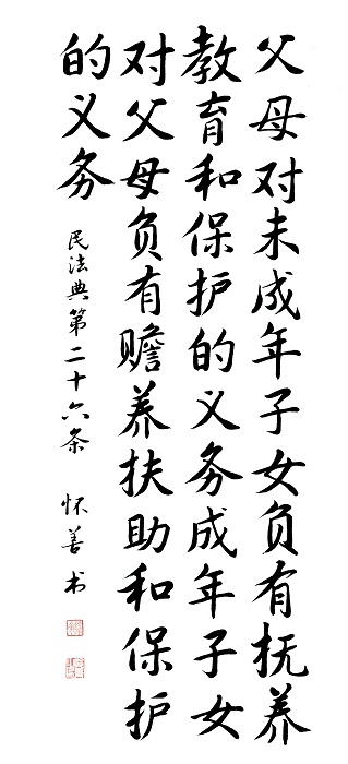 “書·法”活動(dòng)以書寫《中華人民共和國民法典》法條開筆,未來將對(duì)準(zhǔn)更多的法律。