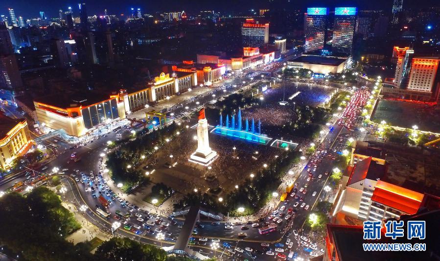 2017年7月30日拍攝的南昌八一廣場夜景。新華社記者 萬象 攝