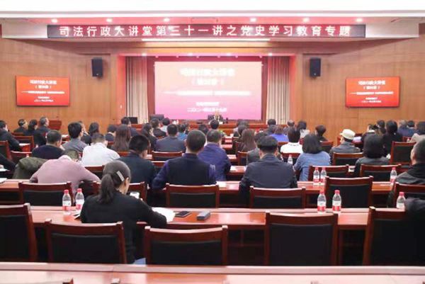 省司法廳機(jī)關(guān)全體黨員干部、監(jiān)獄管理局和戒毒管理局機(jī)關(guān)部分黨員代表參加專題講座會(huì)。