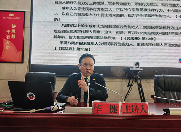在此次培訓會上,中國企聯(lián)維權工委委員、貴州省人民政府立法咨詢專家畢健為參會人員作了以“民法典中招商引資合同法、公司法的運用及案例解析”為主題的《民法典》學習輔導暨法治講座。畢健從《民法典》之法律概念和法律意識、《民法典》之制定歷程和重要意義、《民法典》之主要內(nèi)容和亮點特色、《民法典》之與年齡相關的自然人制度、《民法典》之法人制度、《民法典》之與鄉(xiāng)村振興相關制度等六個方面進行深入淺出的講解,特別針對政府招商引資合同存在的風險與防范作了詳細的分析講解。參會人員紛紛表示獲益匪淺,希望政府多組織這樣的培訓學習。