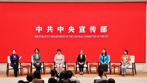 6月15日,中共中央宣傳部在北京舉行中外記者見面會,邀請來自不同領域的女黨員代表,圍繞“巾幗心向黨,奮斗新征程”講述“她”力量。新華社記者 張玉薇 攝