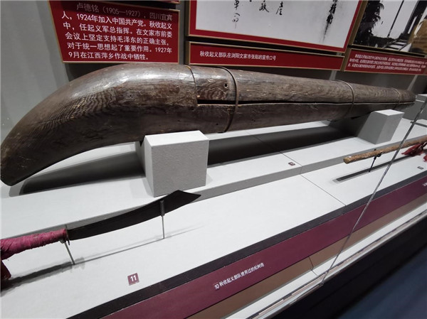 紅一方面軍長征時用的米袋;紅軍長征時過草地時用來充饑的皮鼓。