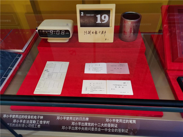 鄧小平使用過的日歷牌、收音機電子鐘、筆筒等。日歷牌上,留有鄧小平清晰的字跡“法制日報十周年”。