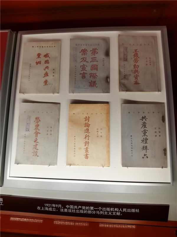 1921年9月,中國共產(chǎn)黨的第一個出版機構(gòu)人民出版社在上海成立,這是該社出版的部分馬列主義文獻(xiàn)。