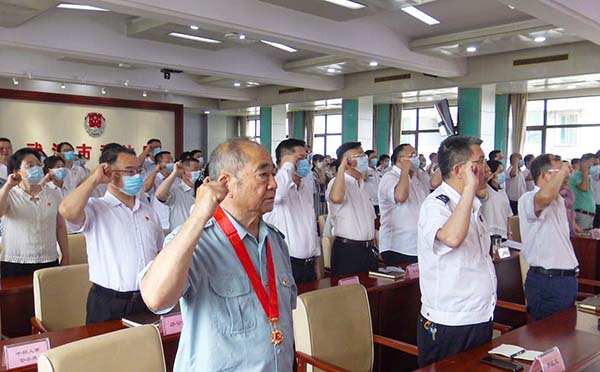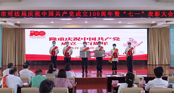 6月24日下午,武漢市司法局舉行慶祝中國(guó)共產(chǎn)黨成立100周年暨“七一”表彰大會(huì)。在老黨員帶領(lǐng)下,新黨員代表進(jìn)行入黨宣誓,“兩優(yōu)一先”代表及參會(huì)人員重溫入黨誓詞。