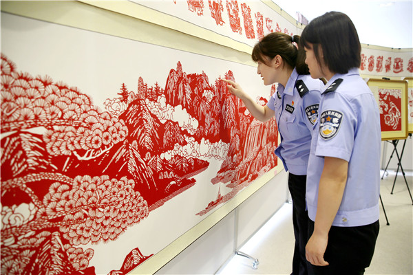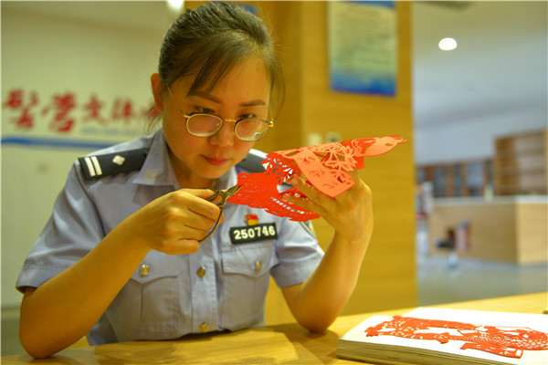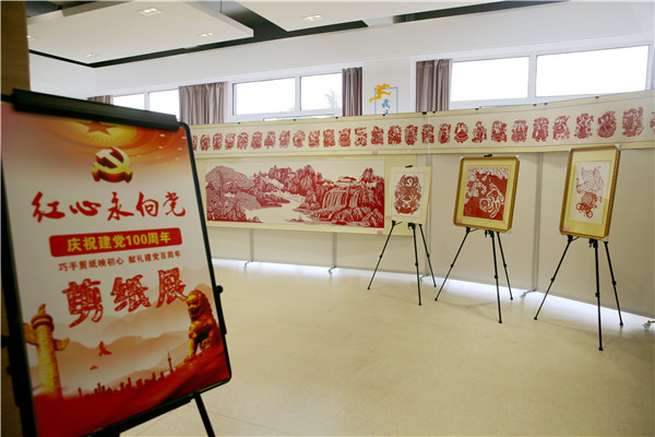 6月29日,山東出入境邊檢總站黃島出入境邊防檢查站舉辦“紅心永向黨”——慶祝建黨100周年剪紙展?!?6個民族大團(tuán)結(jié)》《不忘初心 牢記使命》《光輝歷程》等近百幅作品構(gòu)圖精美、立意鮮明,映射出創(chuàng)作者對黨和祖國的熱愛。