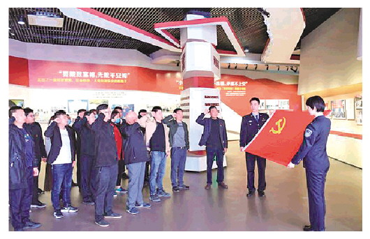 2021年4月11日,參觀者在楓橋經驗陳列館重溫入黨誓詞。 新華社記者 翁忻旸 攝