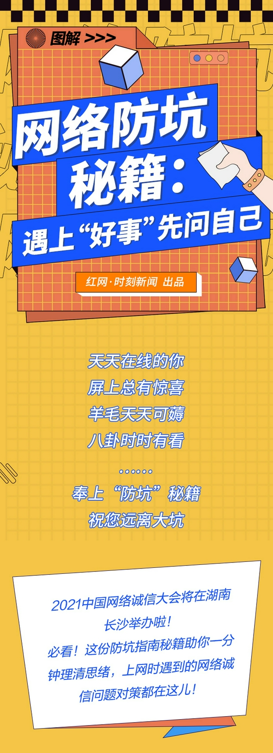 2021中國網(wǎng)絡(luò)誠信大會將在湖南長沙舉辦啦!必看!這份防坑指南秘籍助你一分鐘理清思緒,上網(wǎng)時遇到的網(wǎng)絡(luò)誠信問題對策都在這兒!