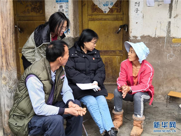 2月9日,張桂梅(右二)在家訪時(shí)與學(xué)生家長交談。新華社發(fā)(王秀麗 攝)