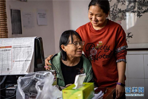3月25日,在華坪兒童福利院長大的雷秋鳳(右)來探望張桂梅。新華社記者 江文耀 攝