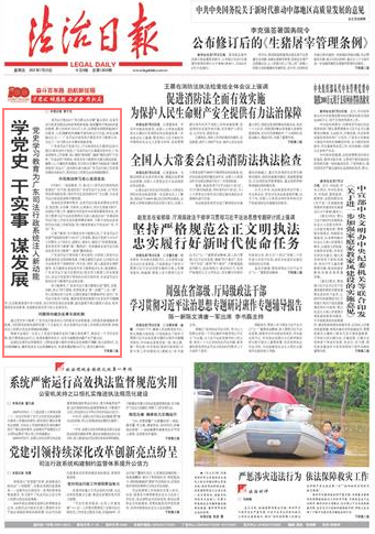 廣東省司法廳黨委書記、廳長陳旭東近日接受《法治日報》記者采訪時介紹說,廣東省司法廳認真落實黨中央、廣東省委相關工作部署,用心規(guī)劃“路線圖”,確?!耙?guī)定動作”不走樣、“自選動作”有特色,將黨史學習教育作為強化理論武裝、凝聚人心力量的有效載體,把為民辦實事作為檢驗學習教育成效的“試金石”,進而轉(zhuǎn)化成為推動廣東司法行政工作改革發(fā)展的全新動力,更好回應人民群眾法治領域新需求。